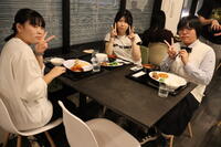 1日目は金閣寺を見学した後、清水寺を見学し、宿泊先へ到着しました。夕食を堪能した生徒たちは、明日の自主研修の打ち合わせや、部屋で荷物の準備をしていました。