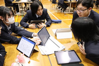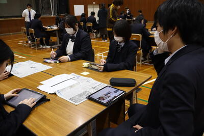 3月13日(金)、「進路体験報告会」を実施しました。卒業生代表から、進路先を決めた経緯、試験に向けて準備した内容、普段の学校生活でがんばったことなど、さまざまな角度でアドバイスがありました。