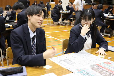 2月25日(水)5・6校時、本校体育館にて第2学年総合的な探究の時間「年度末報告会」を行いました。今年度は「未来の夕張を考える」をテーマに、9グループに分かれて夕張市の地域課題を解決する企画を立案してきました。今回の報告会では、これまで取り組んできた探究活動のまとめ、今後どのような企画を実施していくか等について報告をしました。